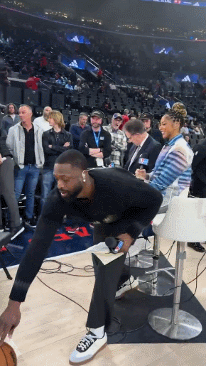 詹韦再次连线!韦德招呼老詹过来 对他耳语交代几句~