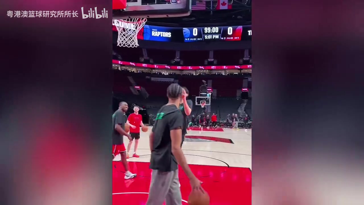 杨瀚森热身时尝试大风车灌篮 不小心磕到手指 不停吮吸