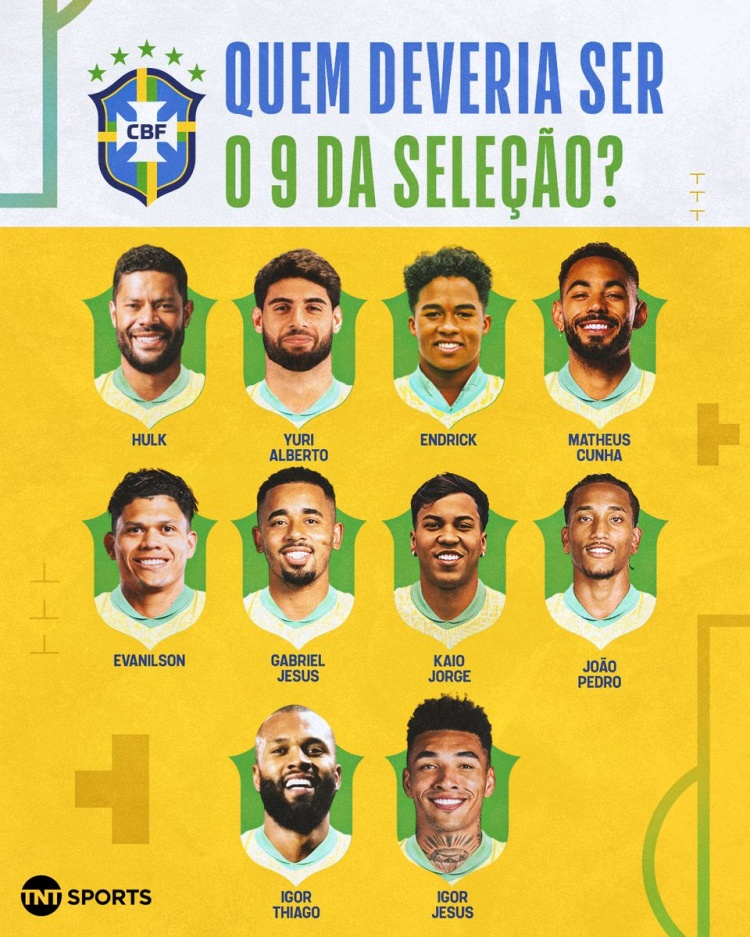 谁会入选世界杯阵容?TNT列巴西9号位:恩德里克、库尼亚在列
