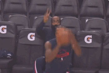 童心未泯!小卡赛前投篮热身 哈登在其身后摆出“兔耳朵”手势