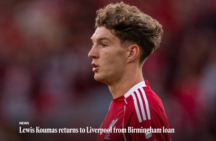 利物浦官方:前锋刘易斯·库马斯结束在伯明翰的租借期,提前回归