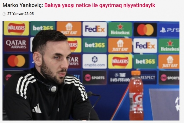 零点吧足球1月28日讯 北京时间1月29日凌晨4点,欧冠联赛阶段第8轮,卡拉巴赫客场挑战利物浦。赛前,卡拉巴赫球员马尔科·扬科维奇在英国举行的新闻发布会上接受了媒体的采访。