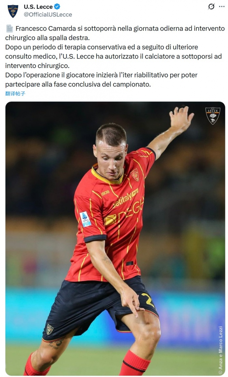 零点吧足球1月28日讯 莱切俱乐部官方确认,队内前锋卡马达将接受手术。
