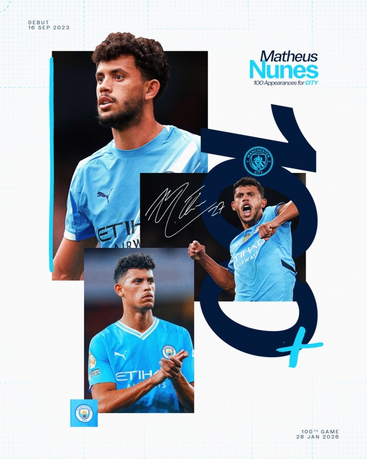 此役这名球员迎来曼城生涯百场里程碑,此前出战的99场比赛,努内斯贡献5球21助攻,随队获得了英超、社区盾、世俱杯共3个冠军。