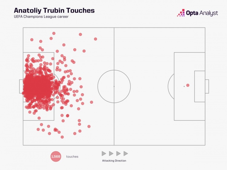 据Opta统计,特鲁宾此前欧冠比赛从未在对方半场触球,而这次头球攻门是他首次在对方半场触球,最终为本菲卡攻入关键进球。