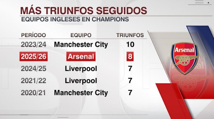 2、阿森纳 8场 25/26赛季