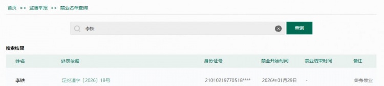 【相关新闻】共136人!足协前后公布两批禁足名单,116人终身禁足+20人禁足5年