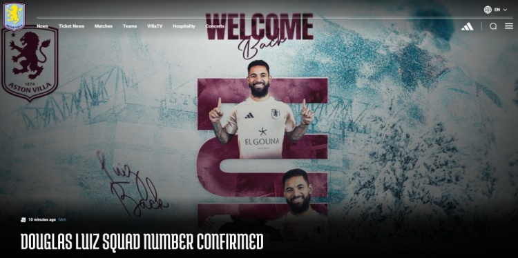 零点吧足球1月29日讯 此前阿斯顿维拉官宣,道格拉斯·路易斯以租借的形式回归球队。