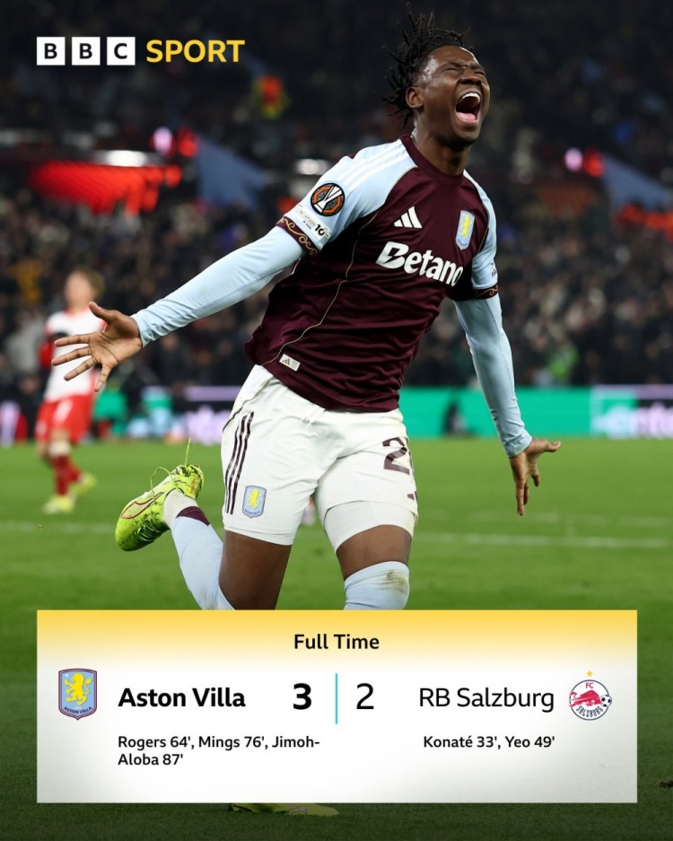 现年19岁的小将贾马尔丁·吉莫在第87分钟接应同为青训出身的队友卡丹·扬的低平传中完成破门,帮助球队逆转战胜奥地利劲旅。自2024年9月完成维拉一线队首秀以来,这已是吉莫-阿洛巴第六次身披维拉战袍出战。贾马尔丁·吉莫选择了最完美的时刻打入了职业生涯首球,在霍尔特看台前,他的母亲正在维拉公园球场的看台上见证这一刻。
