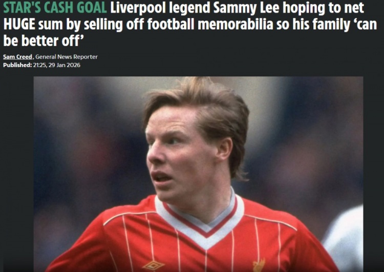 零点吧足球1月30日讯 《太阳报》报道,前利物浦球星萨米·李希望通过出售他的足球纪念品获得10万英镑。