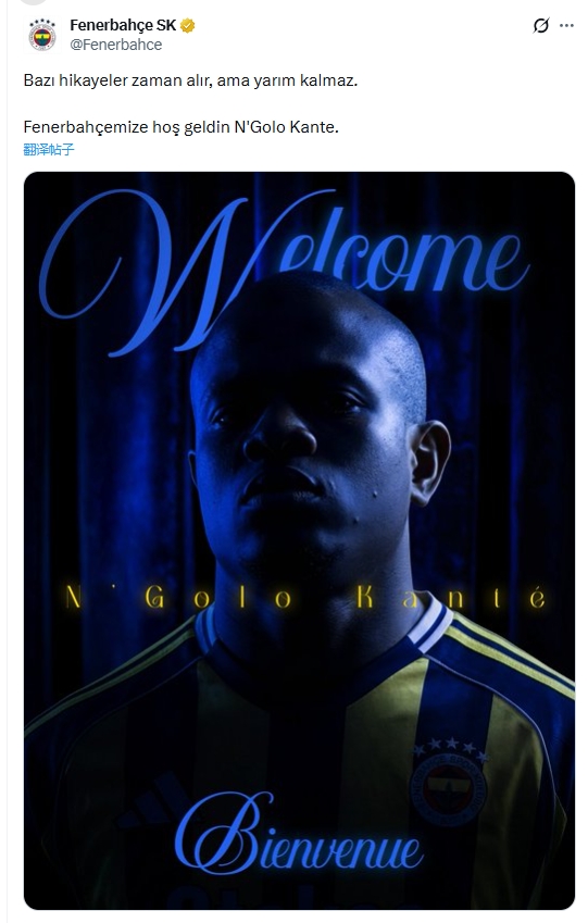 反转!费内巴切官宣坎特文案:有些故事需要时间 但绝不会半途而废