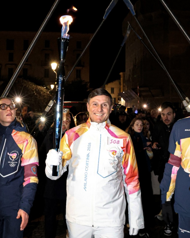 萨内蒂参加米兰冬奥会火炬传递仪式,国米官方社媒晒出照片,配文:“萨内蒂,2026年米兰冬奥会火炬手之一,看到奥运圣火在一位国米人手中传递,真是无上的荣耀!”