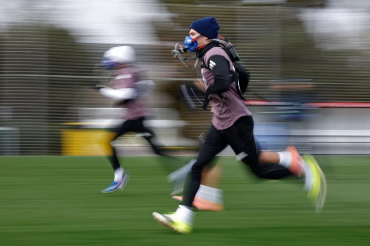 零点吧足球2月4日讯 皇马今日进行了训练,以备战西甲第23轮客战瓦伦西亚的比赛。皇马官方晒出球队训练图,球员们佩戴了体能教练平图斯特制的面罩。