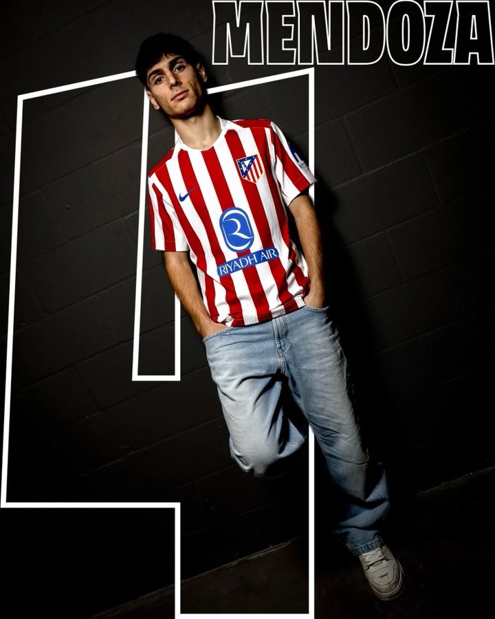 马竞社媒在今日发文透露,门多萨将身穿球队4号球衣。