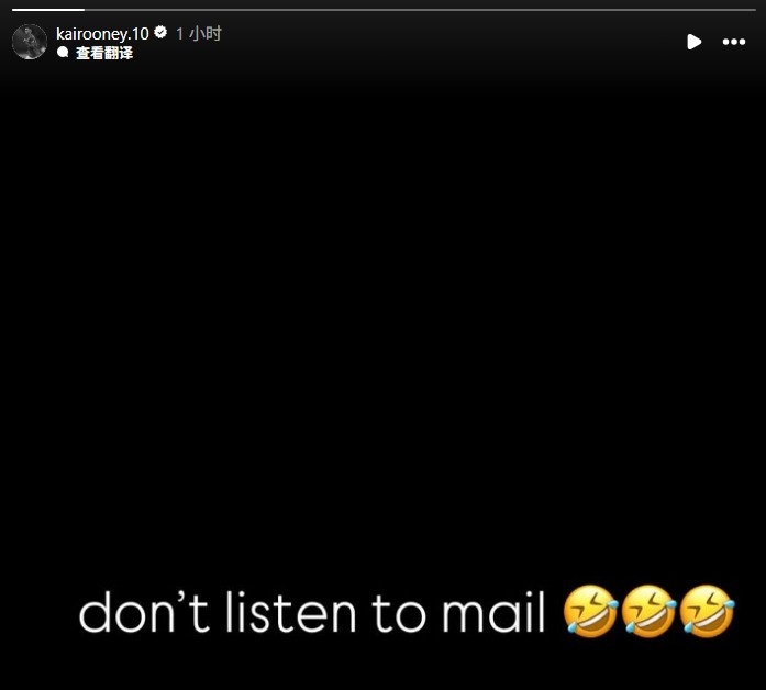 不过,凯·鲁尼随后在社交媒体更新了一条动态,并写道“不要听《邮报》的(笑哭)”,疑似对此事进行辟谣。