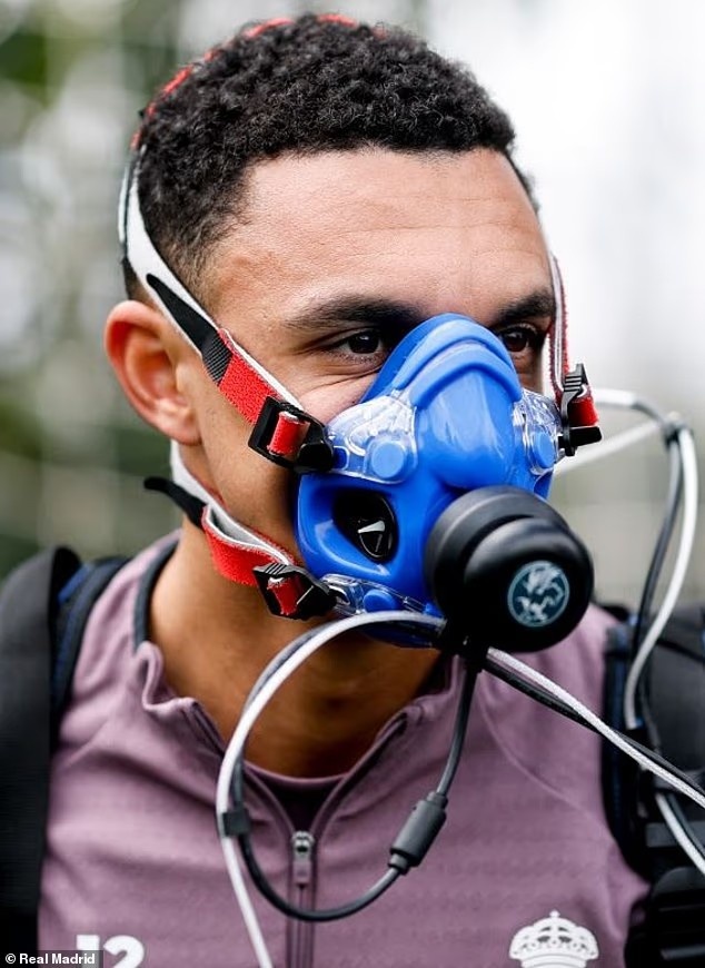 零点吧足球2月6日讯 《每日邮报》报道,皇家马德里球员近日被拍到在训练中佩戴一种不同寻常的蓝色面罩,它形似氧气设备,旨在模拟高原训练。