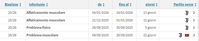 2025年12月21日到2026年1月1日 肌肉疲劳 缺席12天1场比赛