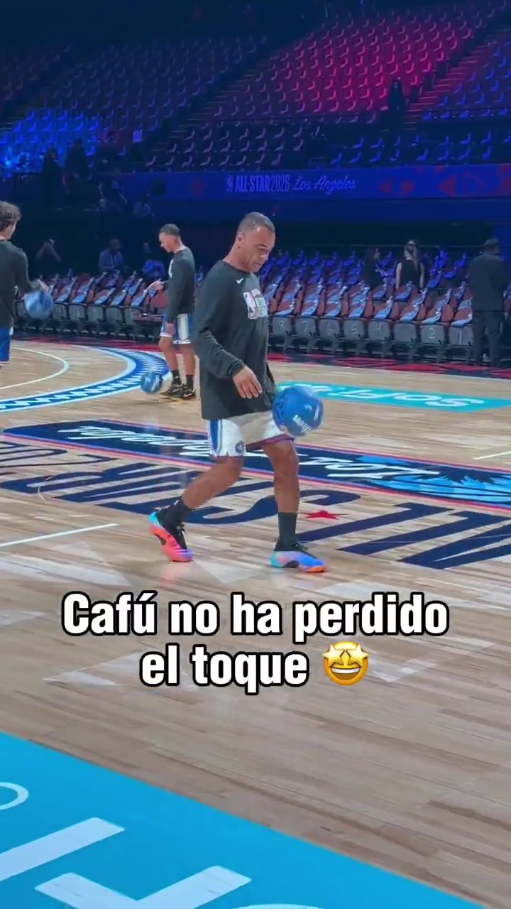 足篮两开花??卡福参加NBA名人赛 热身颠篮球+海豹顶球+用脚投篮