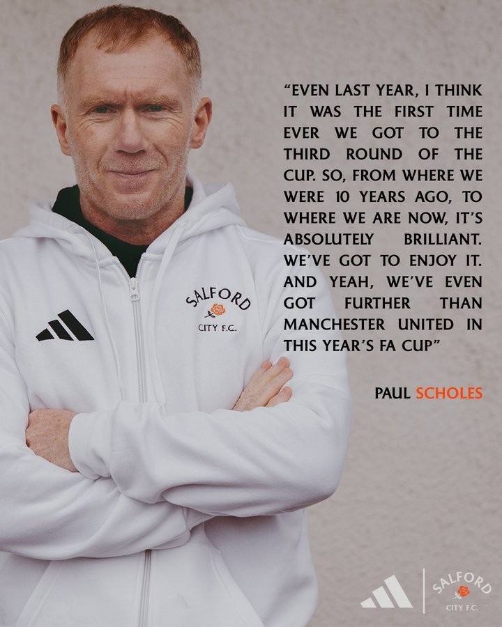 斯科尔斯:“哪怕在去年,那也是我们队史首次闯入足总杯第三轮。所以从十年前的境地到今天的成绩,这绝对是一项了不起的成就。我们应该为此感到高兴。确实,今年我们在足总杯中的表现,甚至比曼联(曼联在足总杯第三轮被布莱顿淘汰)走得更远。”