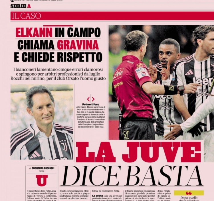 尤文老板埃尔坎直接致电意大利足协主席格拉维纳,斑马军团要求意甲裁判指定负责人罗基下课,并推动裁判职业化改革。