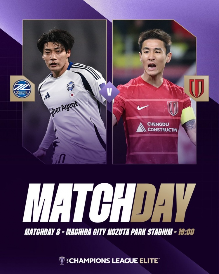 零点吧足球2月17日讯 北京时间今晚18时,亚冠精英联赛成都蓉城将在客场对战J联赛球队町田泽维亚,后者目前位居东亚区次席,蓉城须取胜才有希望晋级淘汰赛。