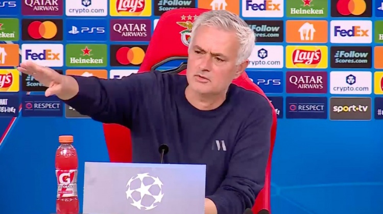 零点吧足球2月18日讯 欧冠1/8决赛附加赛首回合,本菲卡主场0比1不敌皇马。赛后,穆里尼奥接受了Sport TV的采访。他赞扬了两队上半场的表现,对普雷斯蒂安尼与维尼修斯之间的冲突表示遗憾,并解释了自己在补时阶段被罚下时对裁判说的话。