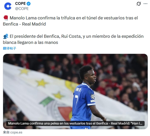 在本菲卡官方发声后,科贝记者改了说法“我说在那个更衣室里发生了争吵,本菲卡主席当时也在场。”