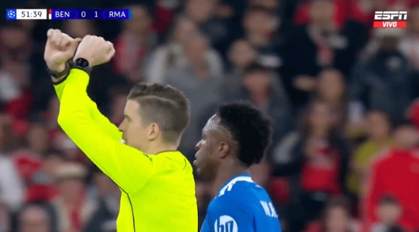 之后本菲卡后卫奥塔门迪对此并不高兴,在双方发生一些口角后,主裁判莱特西耶向困惑的维尼修斯出示了黄牌。