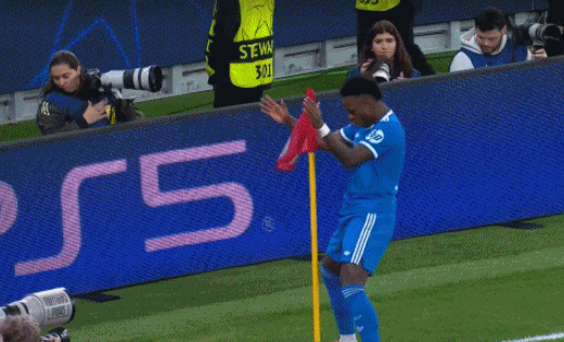事件始于维尼修斯进球后,维尼修斯跑到角旗区跳起了庆祝舞蹈。