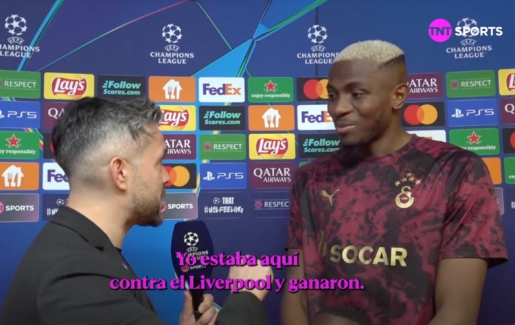 零点吧足球2月18日讯 欧冠1/8决赛附加赛首回合,加拉塔萨雷主场5比2大胜尤文图斯。赛后,加拉塔萨雷前锋奥斯梅恩接受了TNT体育的采访。