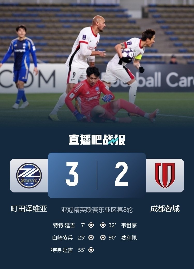 零点吧足球2月18日讯 亚冠精英联赛东亚区第8轮,町田泽维亚主场3-2击败成都蓉城,澳大利亚外援特特·延吉梅开二度。