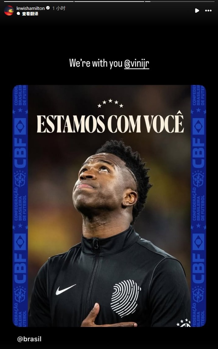 零点吧足球2月18日讯 F1车手刘易斯·汉密尔顿今天在Instagram发文,声援维尼修斯。