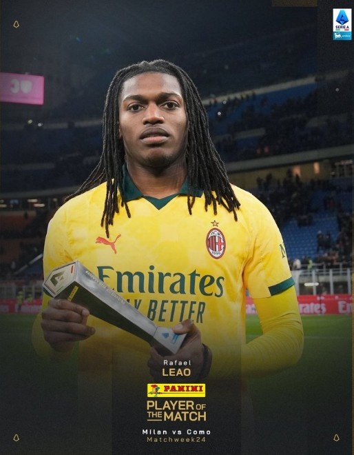 挑射扳平,意甲官方:莱奥当选AC米兰1-1科莫全场最佳球员