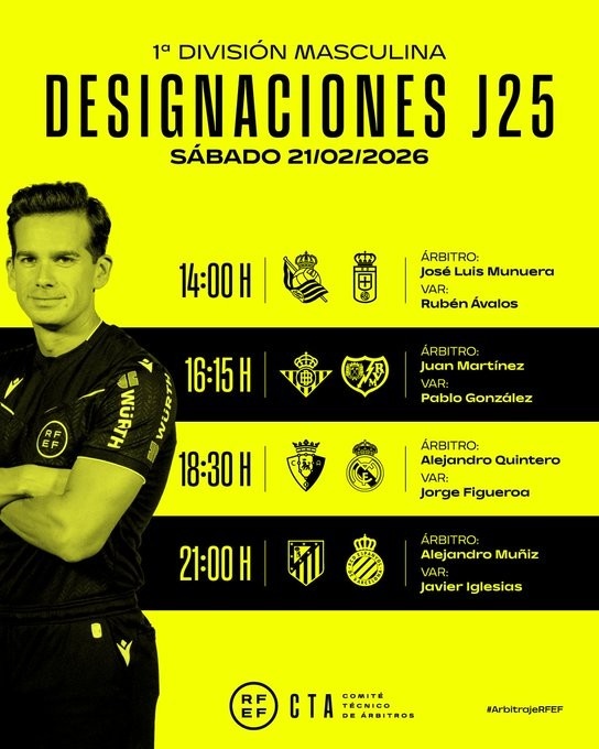 零点吧足球2月20日讯 北京时间2月22日1点30点,西甲第25轮皇马即将在客场挑战奥萨苏纳。《马卡报》报道,本场的当值主裁判为金特罗·冈萨雷斯,VAR裁判为乔治·菲格罗亚。
