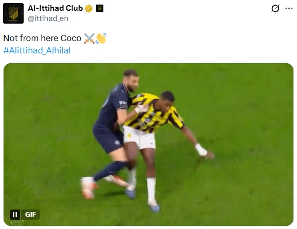 翻脸!吉达联合官推晒动图撞飞本泽马,配文:你已不是这儿的人