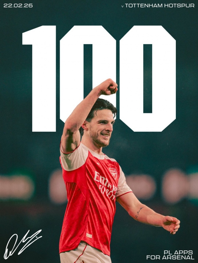值得一提的是,本场比赛将是赖斯代表阿森纳出战英超的第100场比赛。