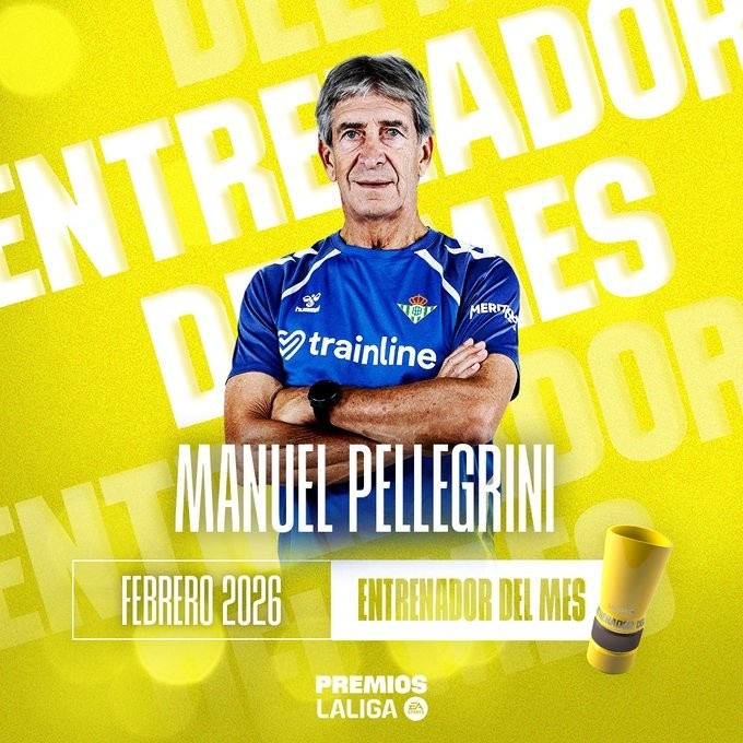 零点吧足球2月23日讯 官方消息,贝蒂斯主帅佩莱格里尼当选西甲二月最佳主帅。