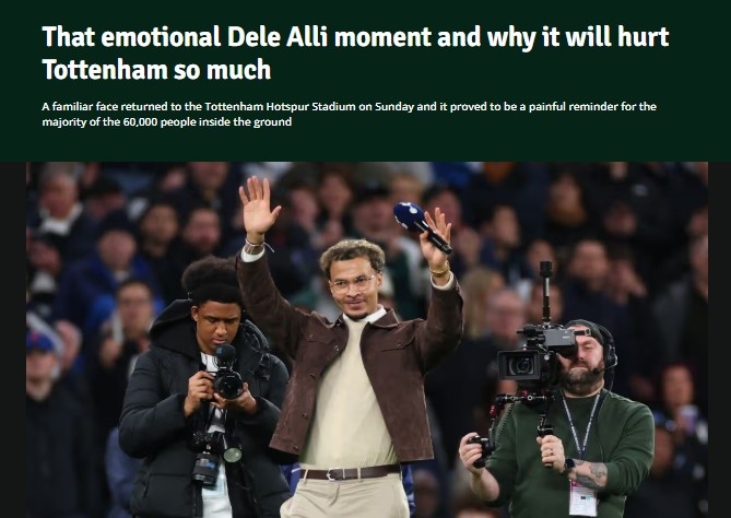 英媒:29岁阿里重返热刺主场,受到现场六万球迷的欢呼