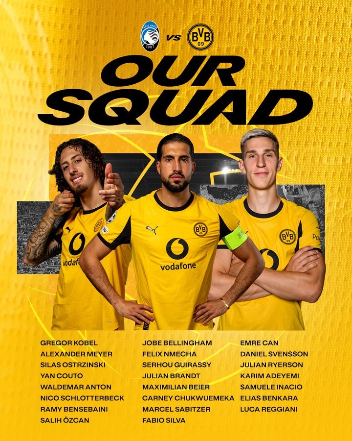 零点吧足球2月24日讯 北京时间本周四凌晨1点45,欧冠1/8决赛附加赛次回合多特将客战亚特兰大,多特公布了此役球队大名单,此前腹股沟受伤的埃姆雷·詹、肌肉受伤的施洛特贝克在列。
