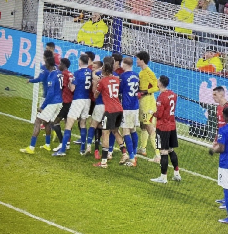 赛后,曼联中场梅努分享了一张图片,将这场景比作WWE的皇家大战——球员们扭打在一起,手臂挥舞,球衣拉扯。即便以现代英超标准来看,这都堪称极端,而且这是蓄意为之。
