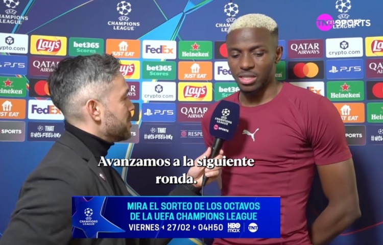 零点吧足球2月26日讯 欧冠1/8决赛附加赛,加拉塔萨雷以总比分7比5击败尤文图斯,最终晋级16强。其中奥斯梅恩在加时赛中打进关键1球。赛后,奥斯梅恩接受了TNT体育的采访。
