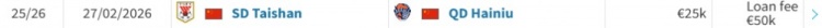 零点吧足球2月27日讯 根据德转信息,泰山球员刘国宝租借加盟青岛海牛。