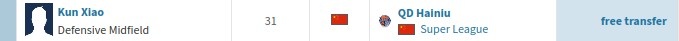 零点吧足球2月27日讯 德转市场今日更新,显示广东广州豹签下两名中场球员肖鲲和王俊杰。