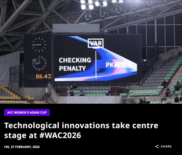 亚足联表示,本届女足亚洲杯赛事将展示一系列全面的技术创新,旨在维护最高竞赛标准并确保比赛运营的无缝执行。