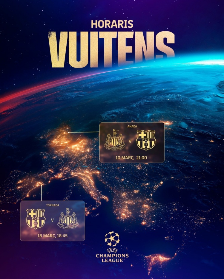 巴萨官方公布了这两场比赛的具体时间,两队首回合交手将是在北京时间3月11日凌晨4:00,巴萨客战纽卡斯尔。