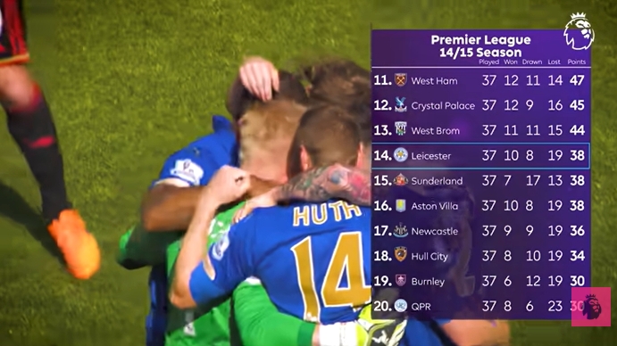蓝狐奇迹前传!14/15赛季莱斯特城末9轮22分逆天改命,20名→14名