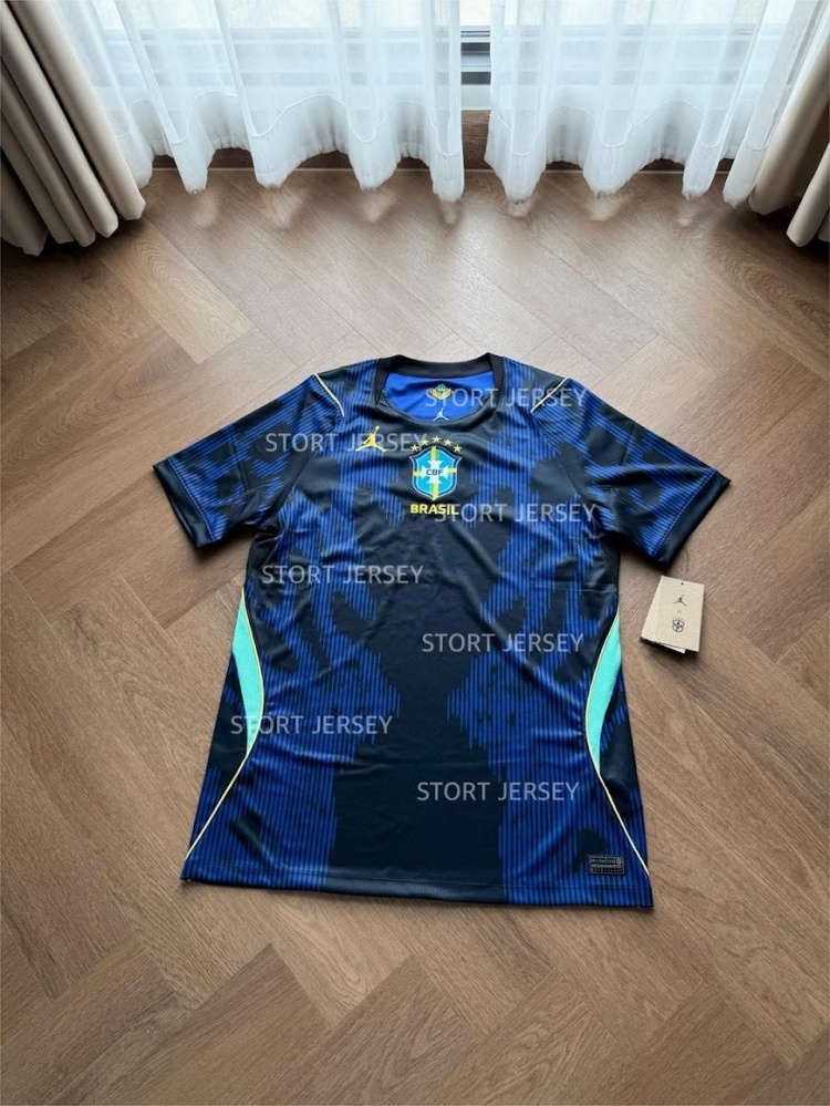 巴西2026世界杯客场球衣谍照:主体蓝黑配色,灵感源于南美箭毒蛙