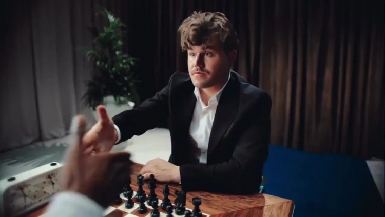 而现在,埃泽在一则为New Balance拍摄的广告中,与史上最伟大的棋手之一、国际象棋大师马格努斯·卡尔森进行了一场精彩的对决。片段中,埃泽身着白衬衫,与穿着黑色西装的卡尔森握手,随后两人的对弈在棋盘前开始。