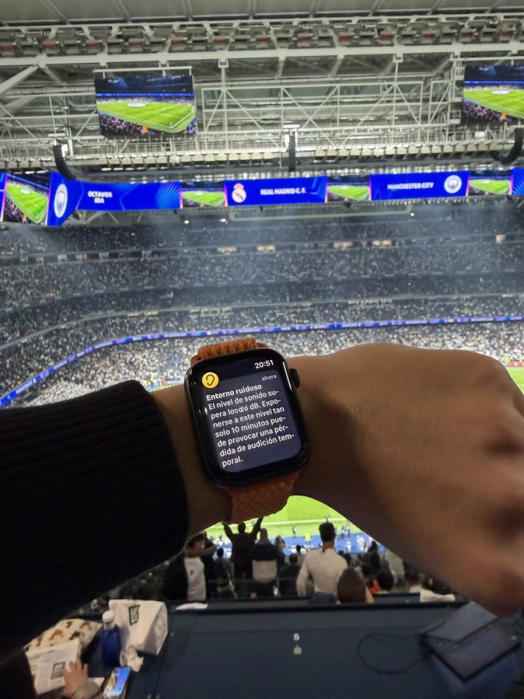 记者Jose Padilla社媒晒出照片,由于伯纳乌球场声浪太高,他的智能手表报警。