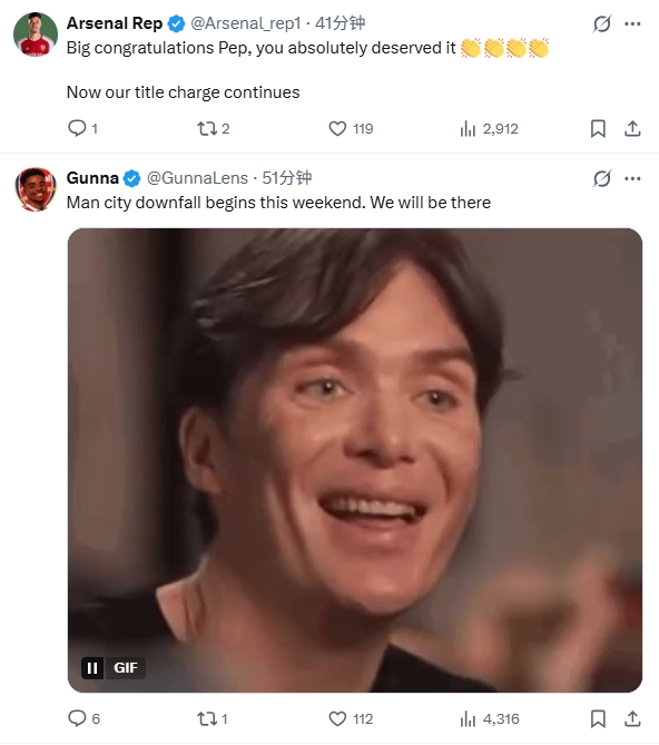 公认毒奶!国外枪迷庆祝瓜帅得月最佳:诅咒、枪迷投的、曼城崩盘